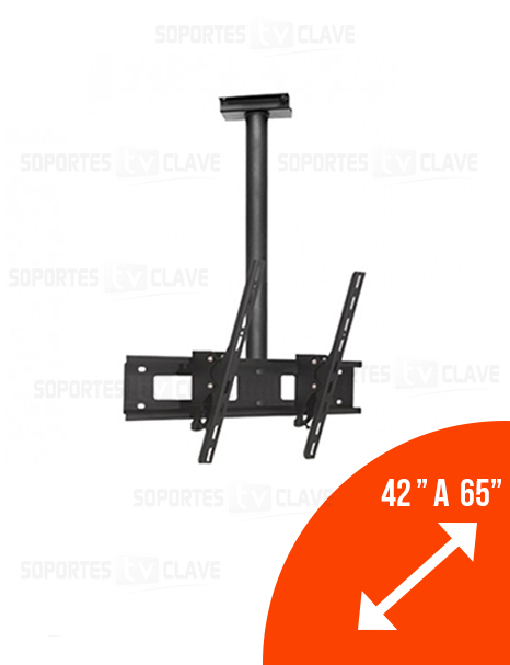 Soportes a techo telescopico con inclinación al toque para pantalla de 42″ hasta 65″ con inclinación de 28° al toque, tildeo 10″ kits de instalación.